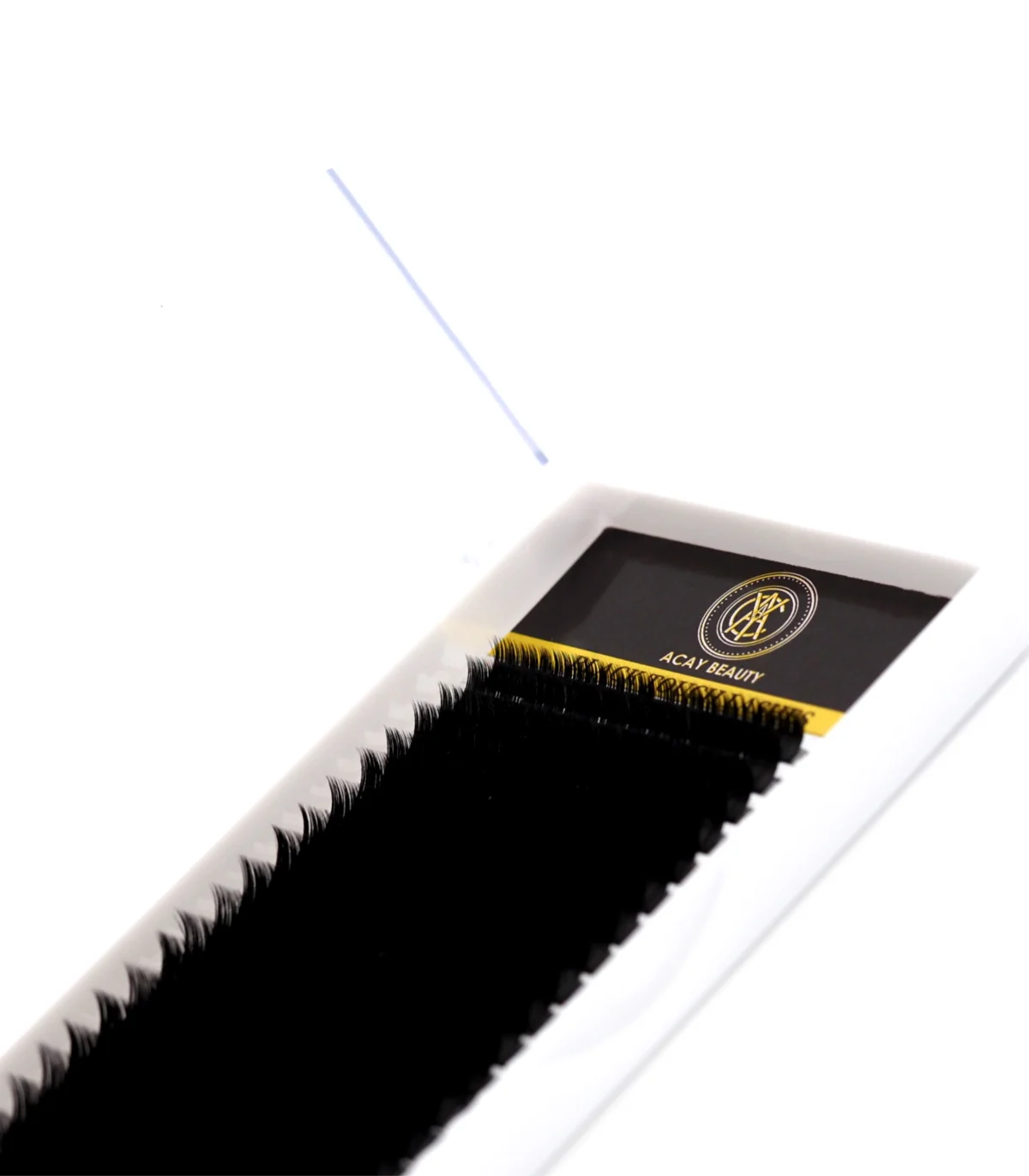 Forma specială „flat” creează iluzia unui volum mai bogat, chiar și atunci când se folosesc grosimi reduse. Astfel, poți obține un look dramatic, eyeliner effect sau un rezultat definit, dar confortabil pentru clientă. Sunt ideale pentru tehnica one by one, dar și pentru seturi de extensii soft volume, oferind flexibilitate în realizarea diferitelor stiluri – cat eye, doll eye sau natural soft glam.