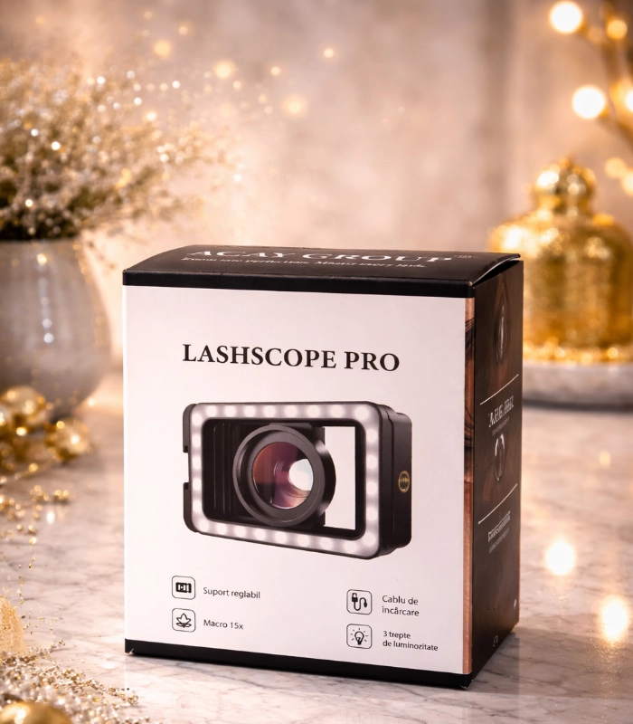 LENTILA MACRO Lashscope Pro – lentila macro profesională cu LED pentru telefon, special creată pentru tehnicienii în extensii de gene și creatorii de conținut din domeniul beauty. Dacă îți dorești imagini clare, detalii impecabile și un conținut care atrage instant atenția, acest accesoriu este alegerea ideală.